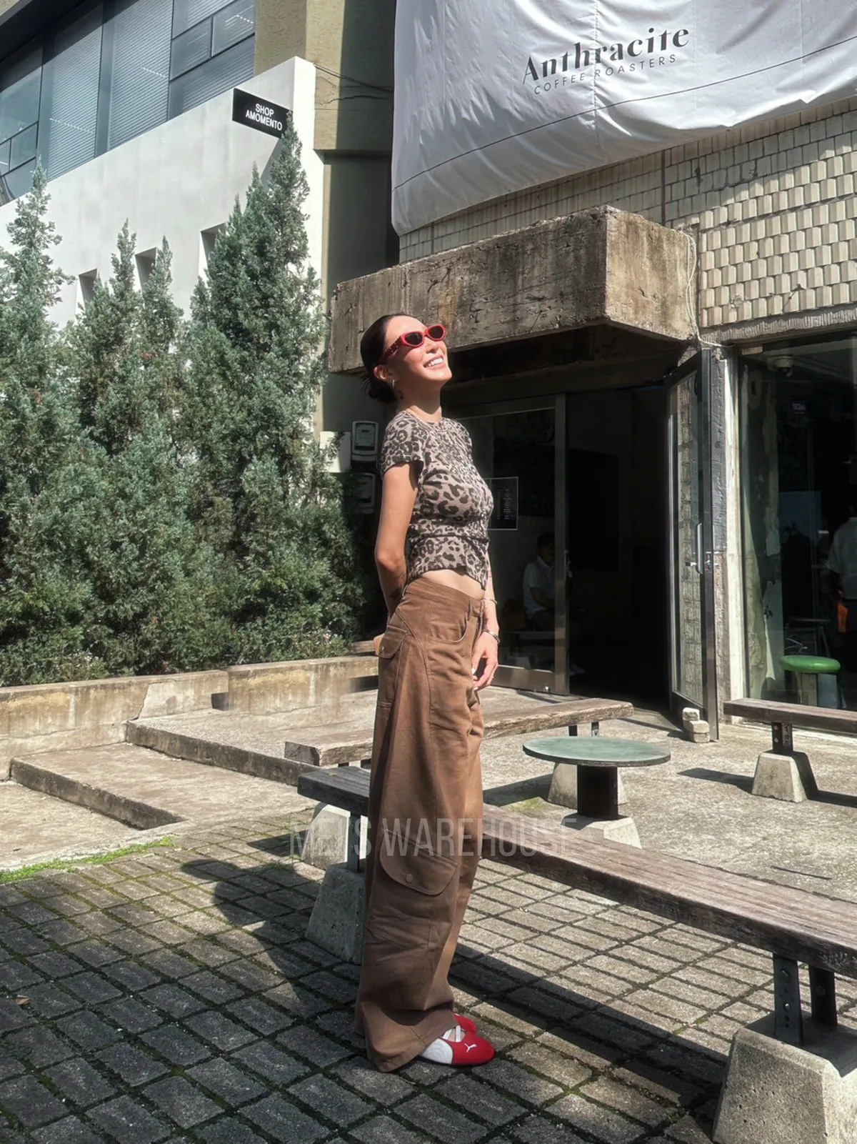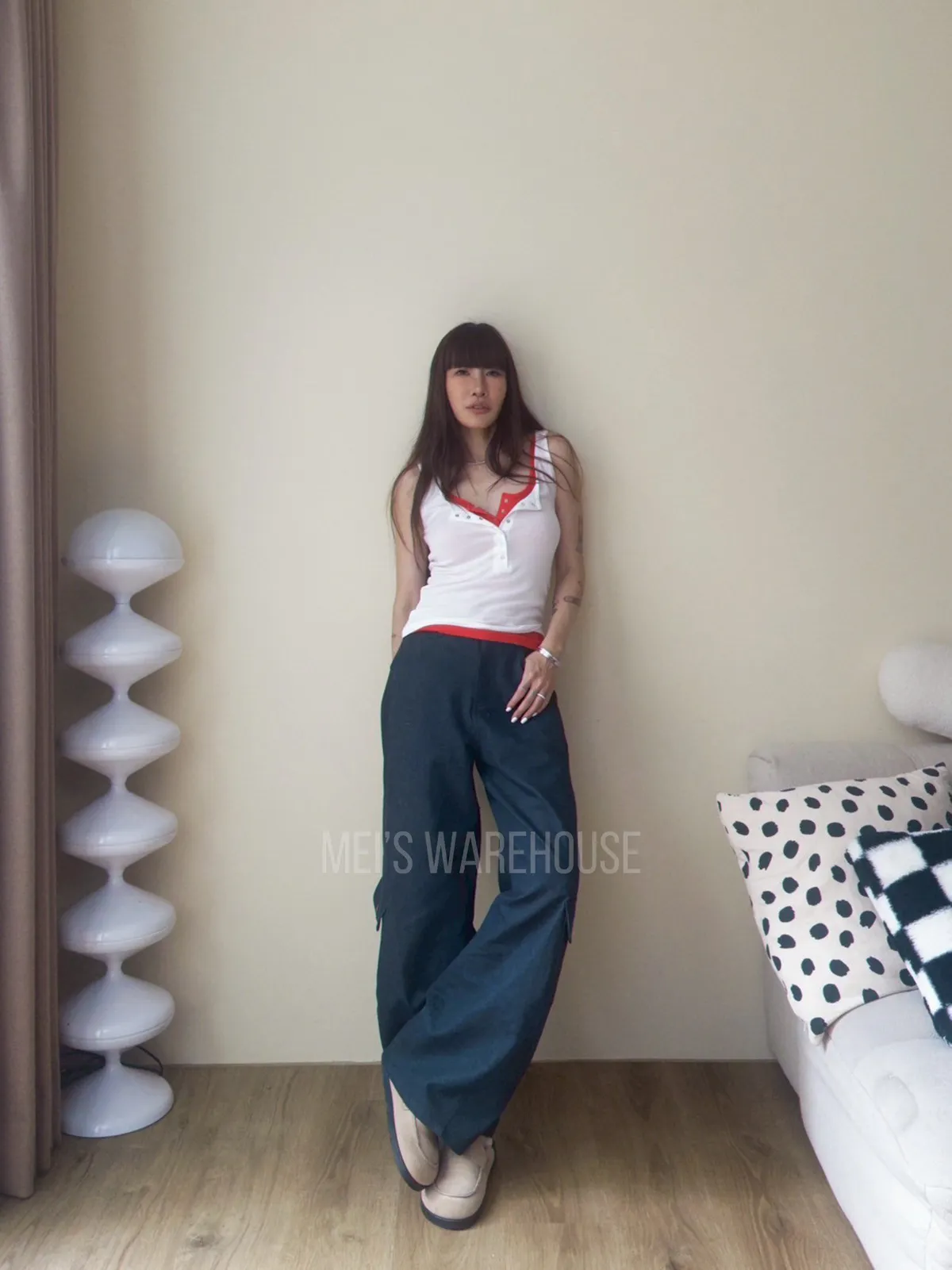同色扣剪裁工作褲