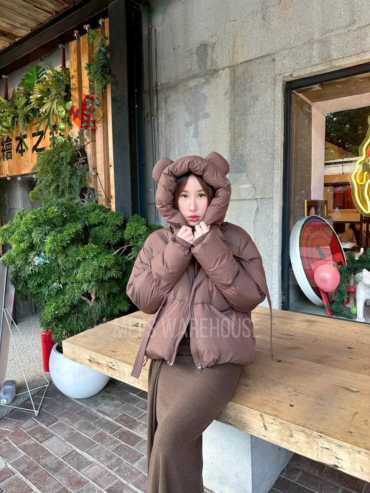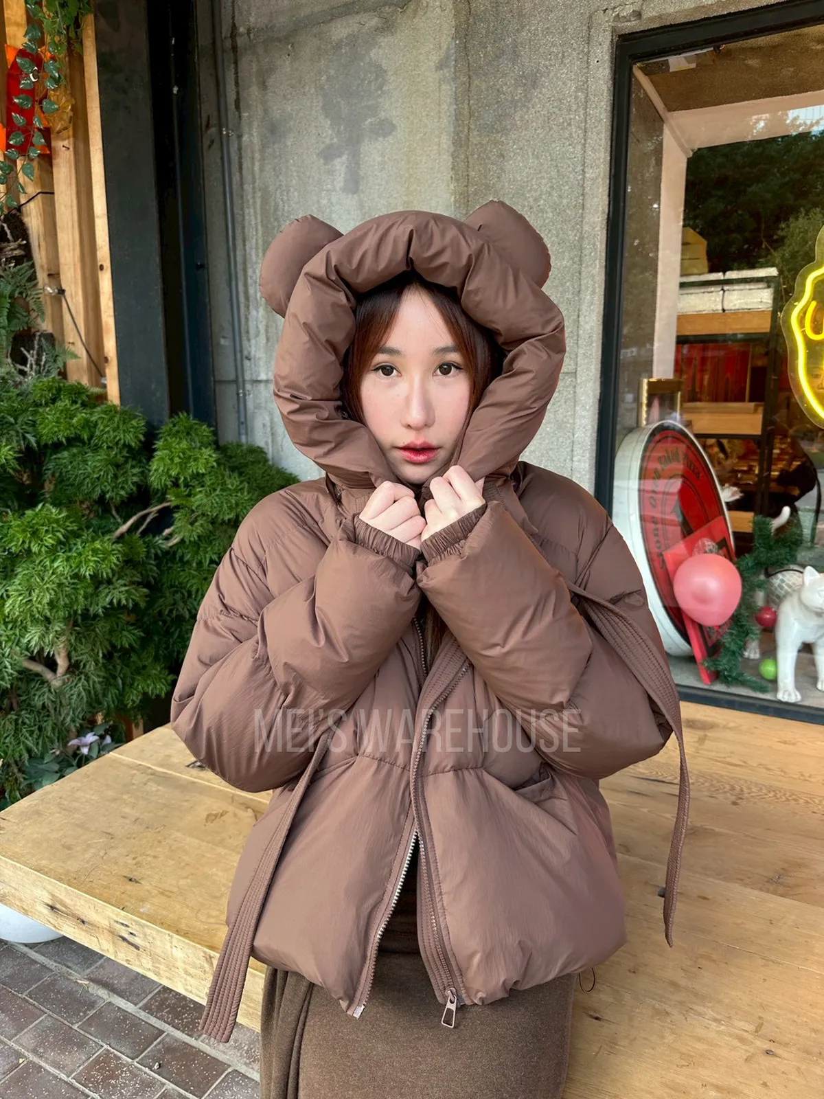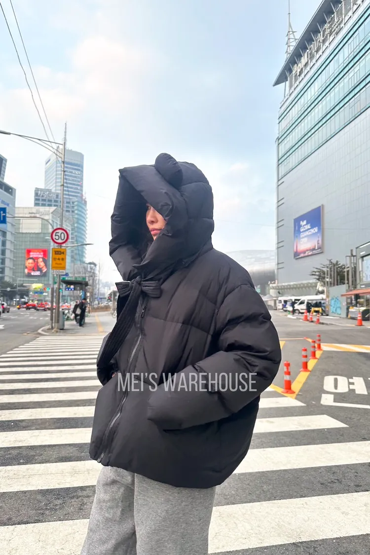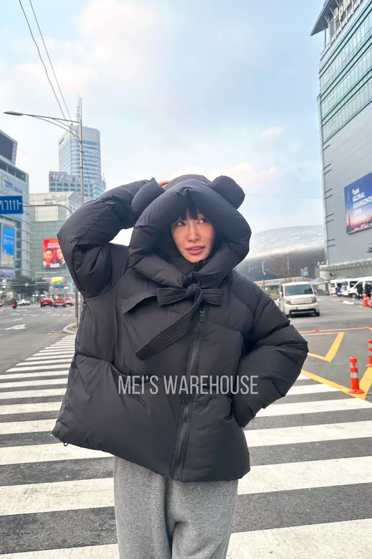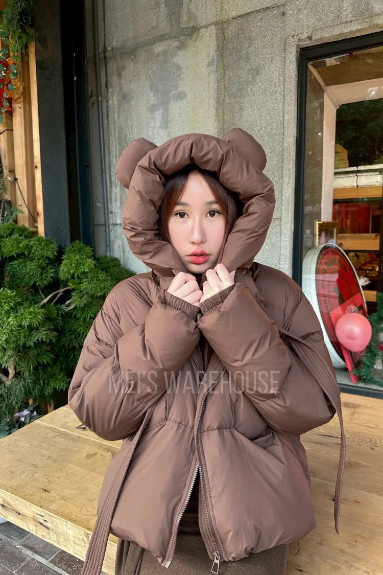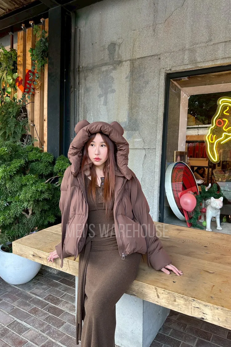 可拆熊帽鴨絨外套