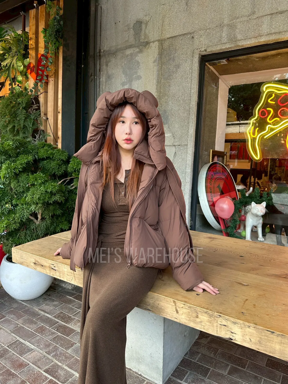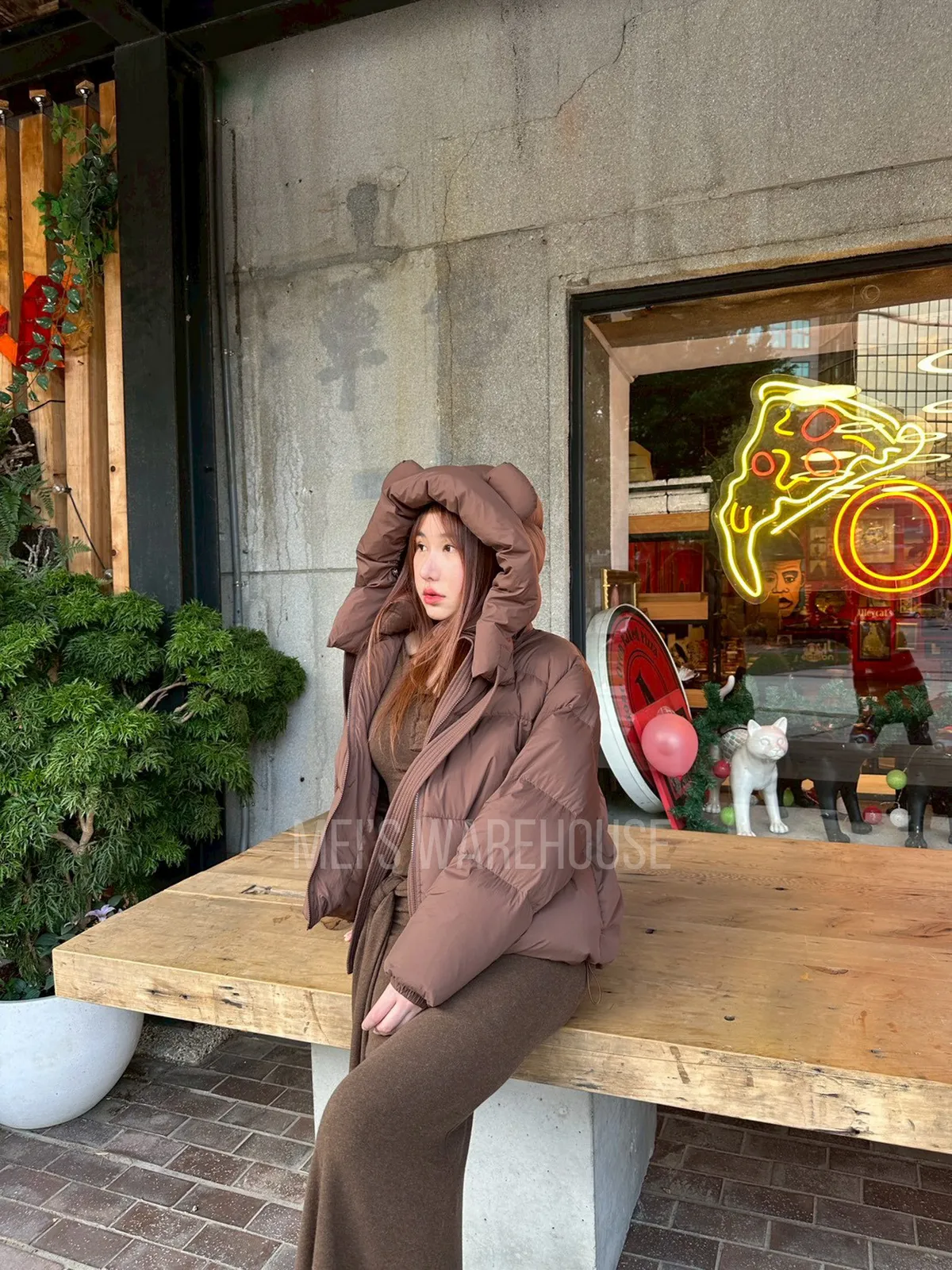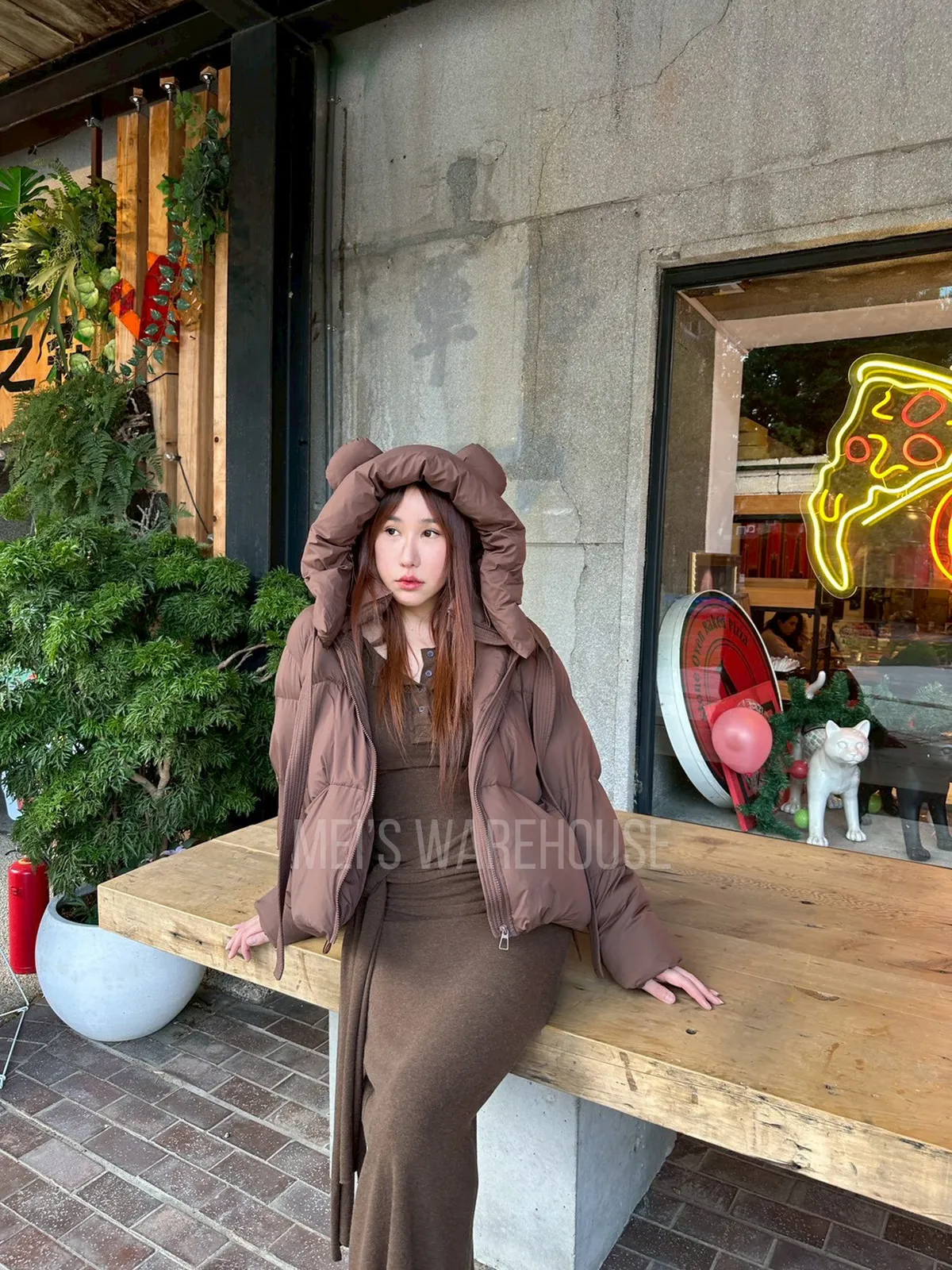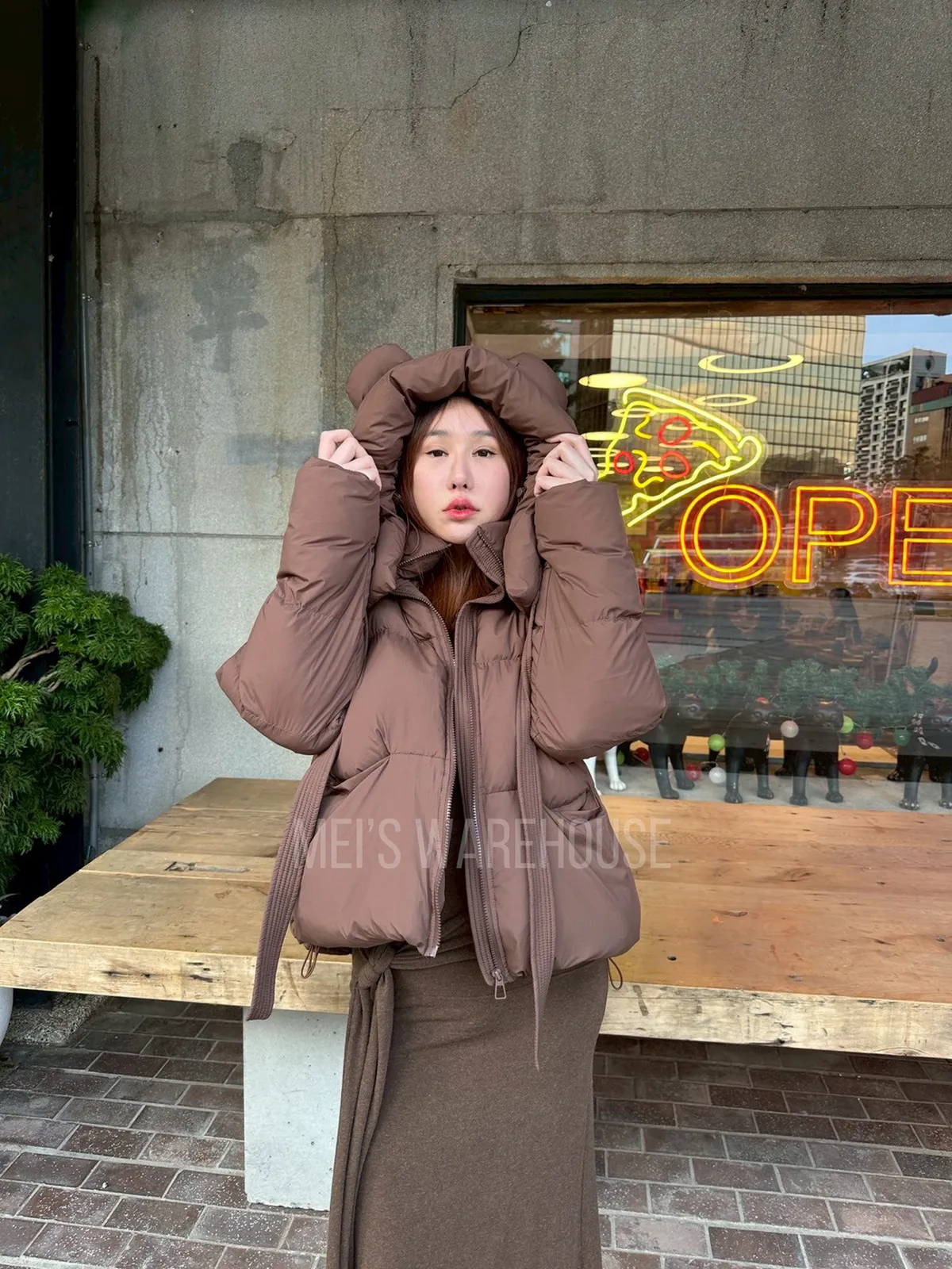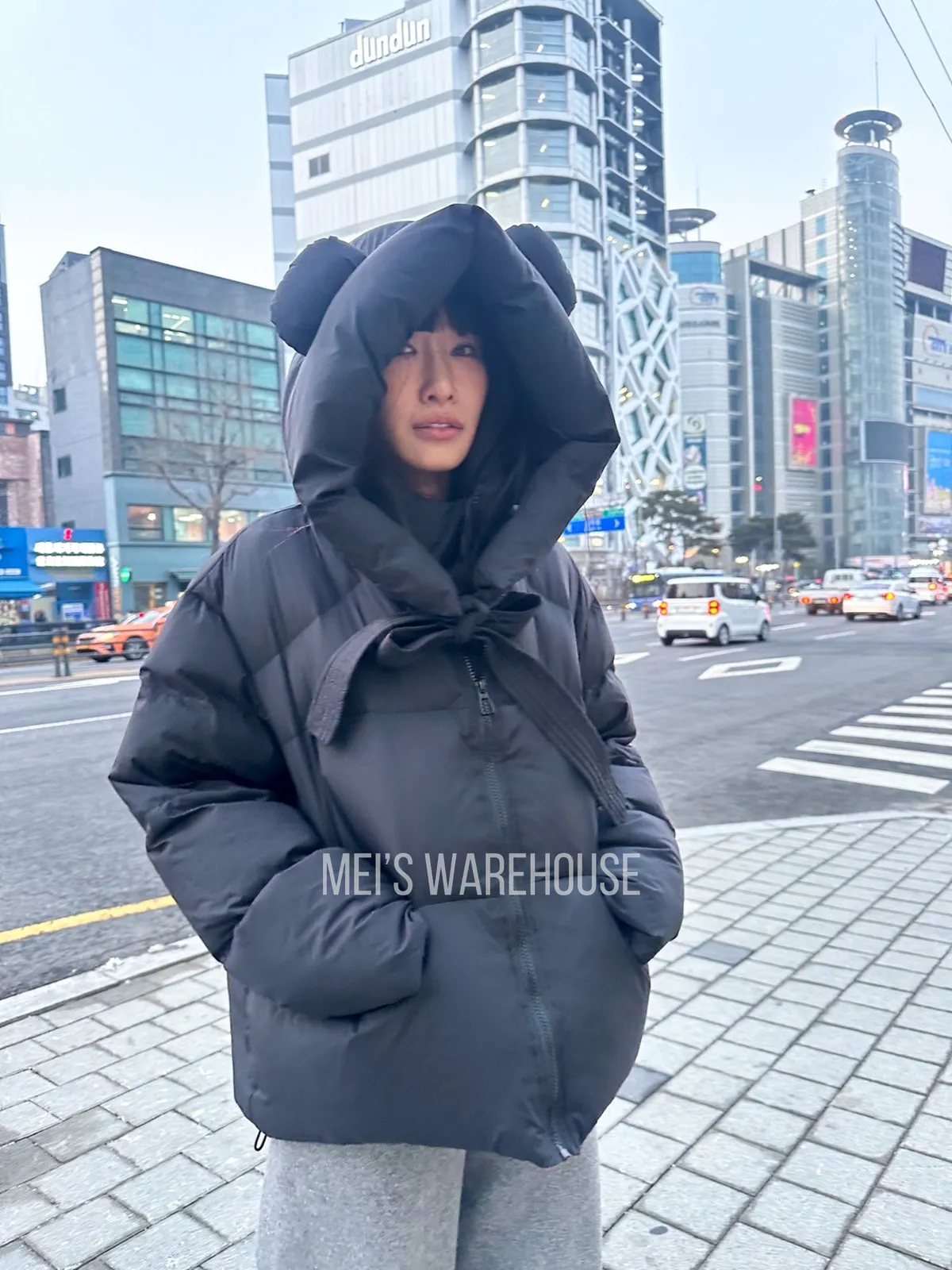 可拆熊帽鴨絨外套