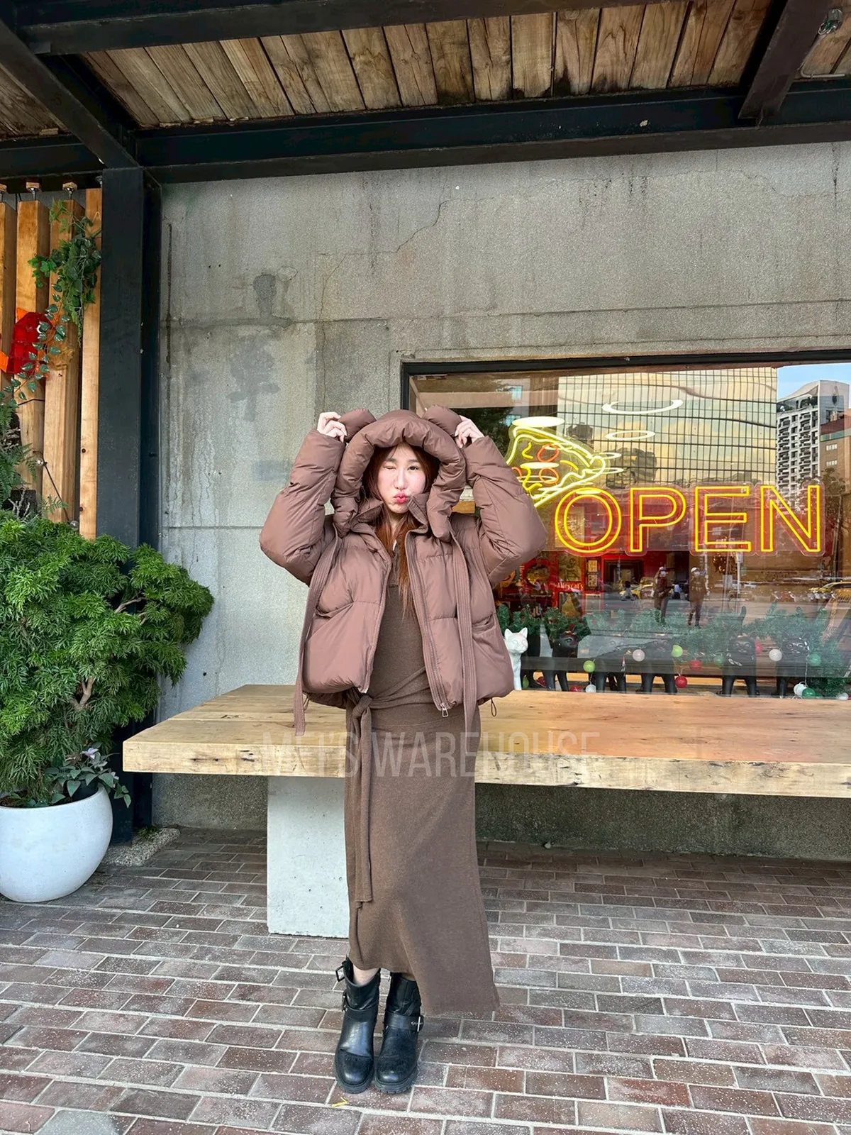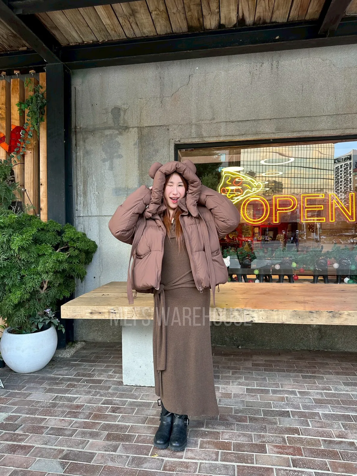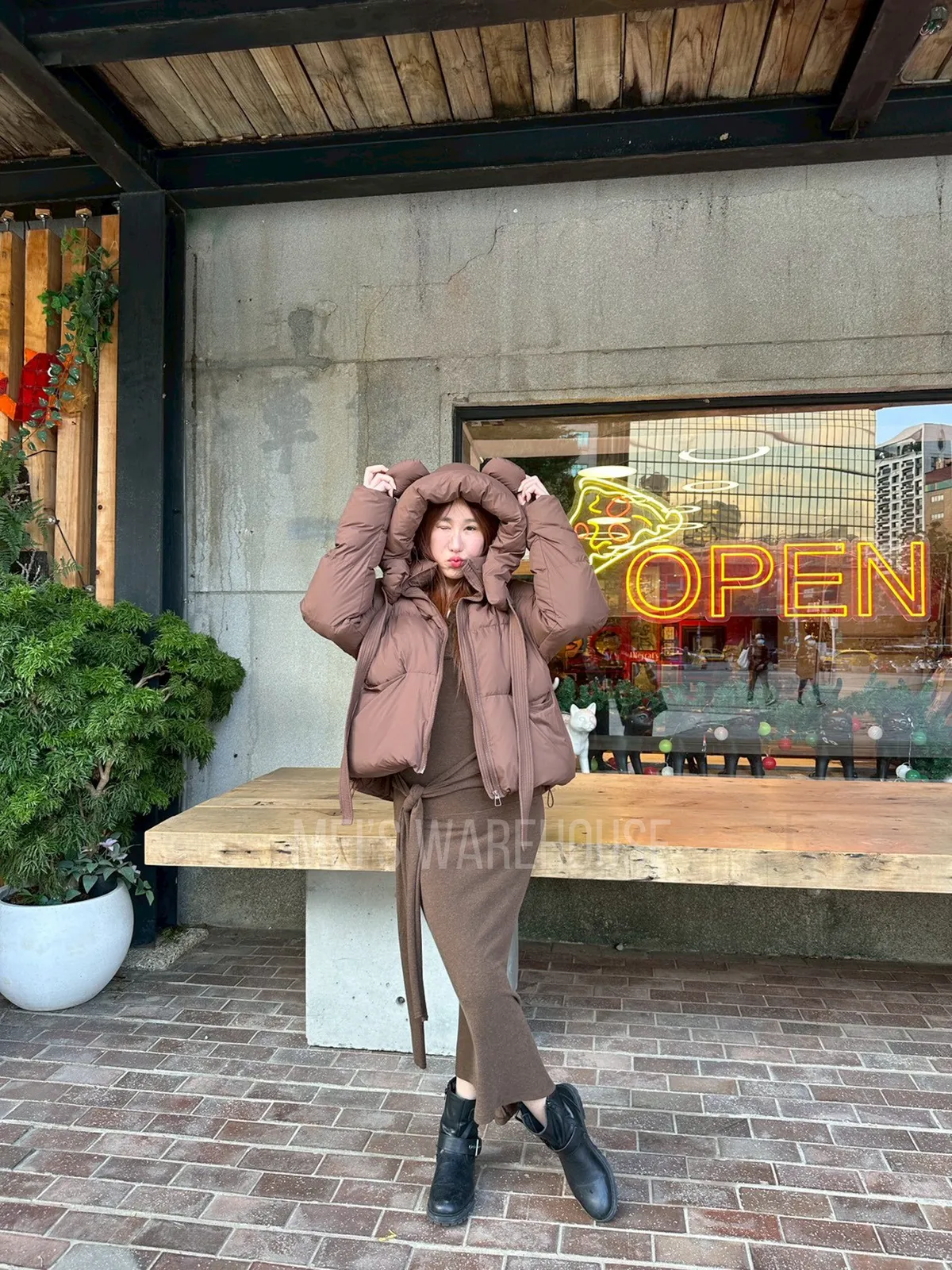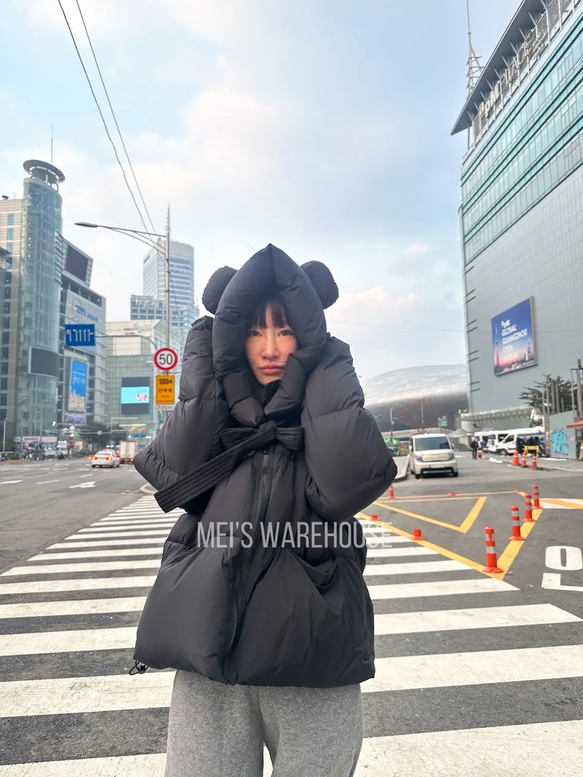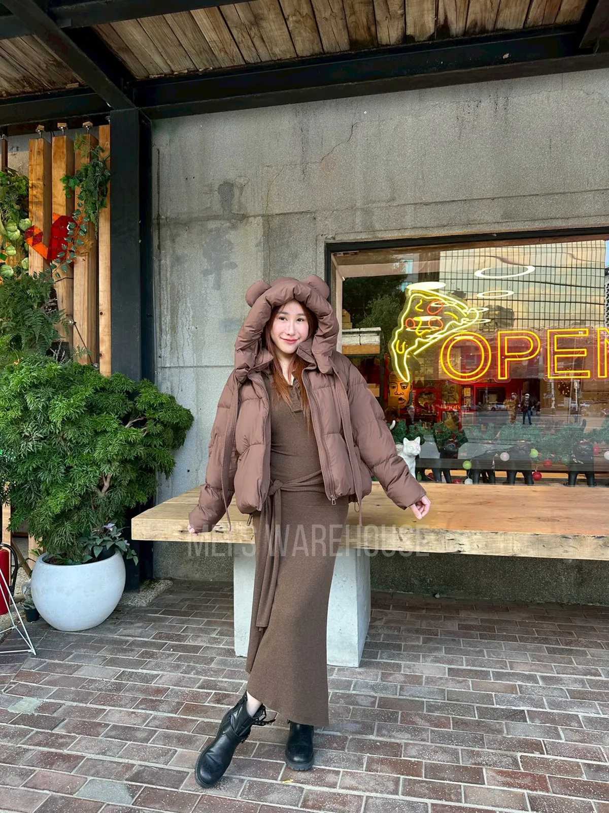 可拆熊帽鴨絨外套