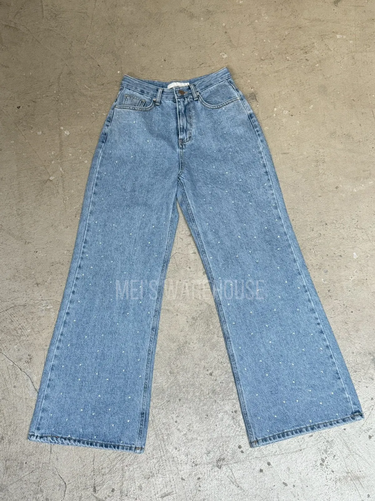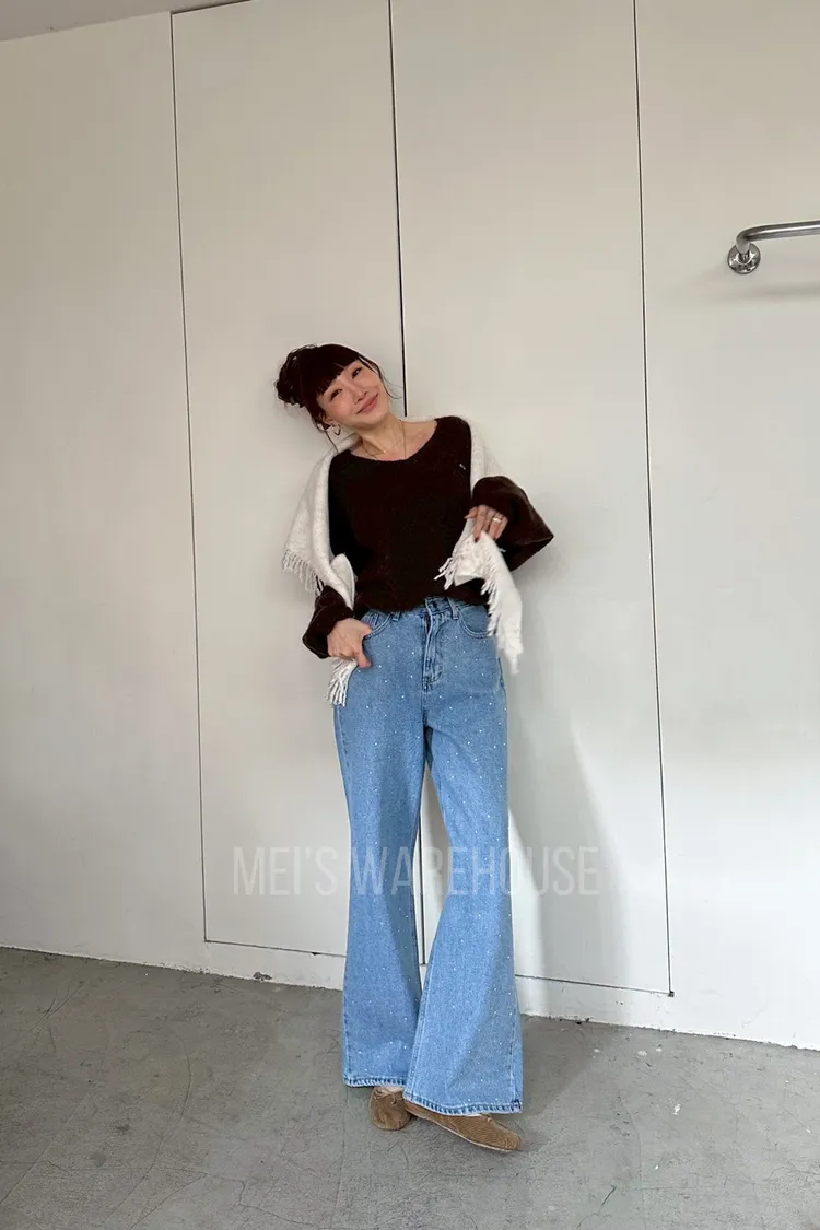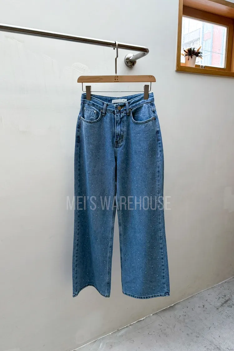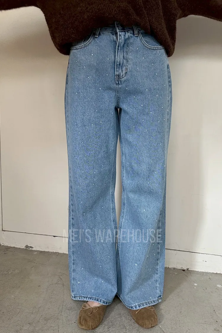 水鑽直筒牛仔褲