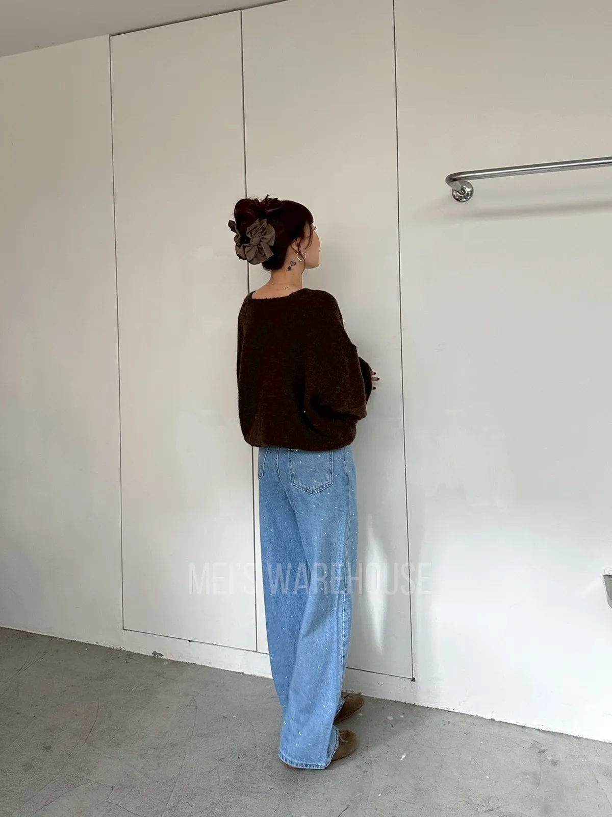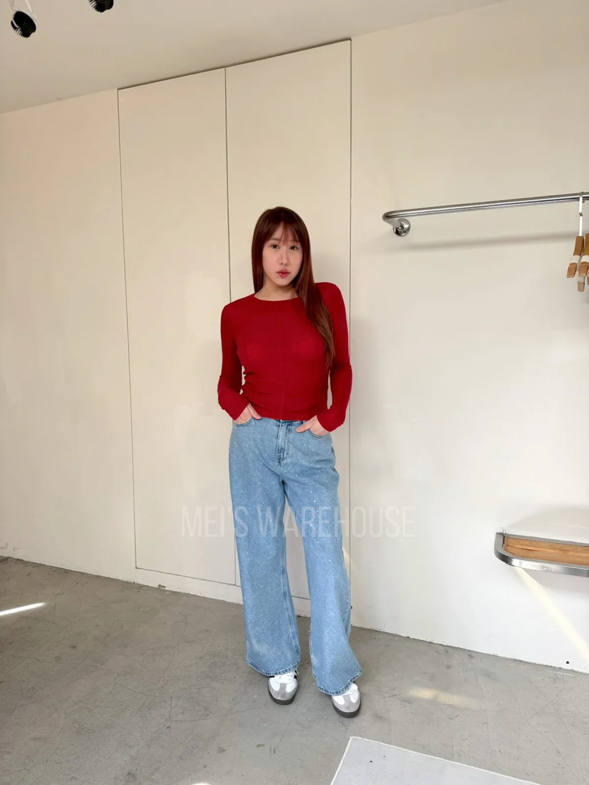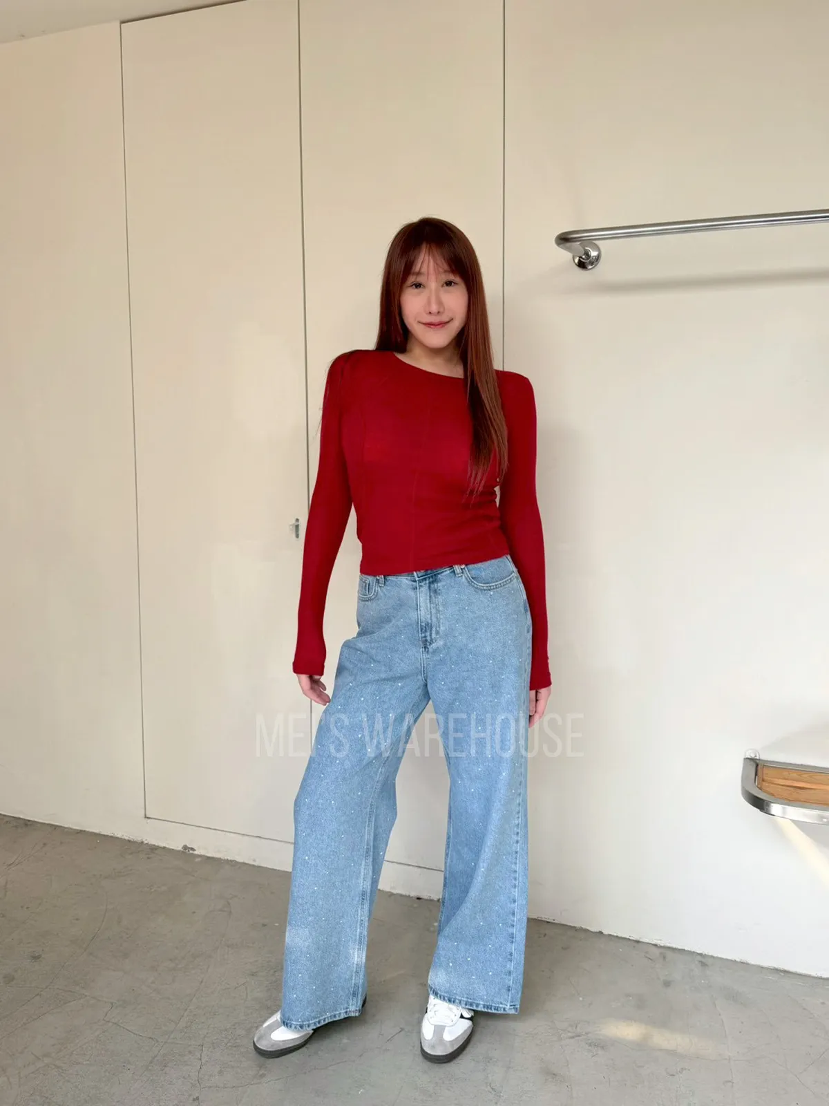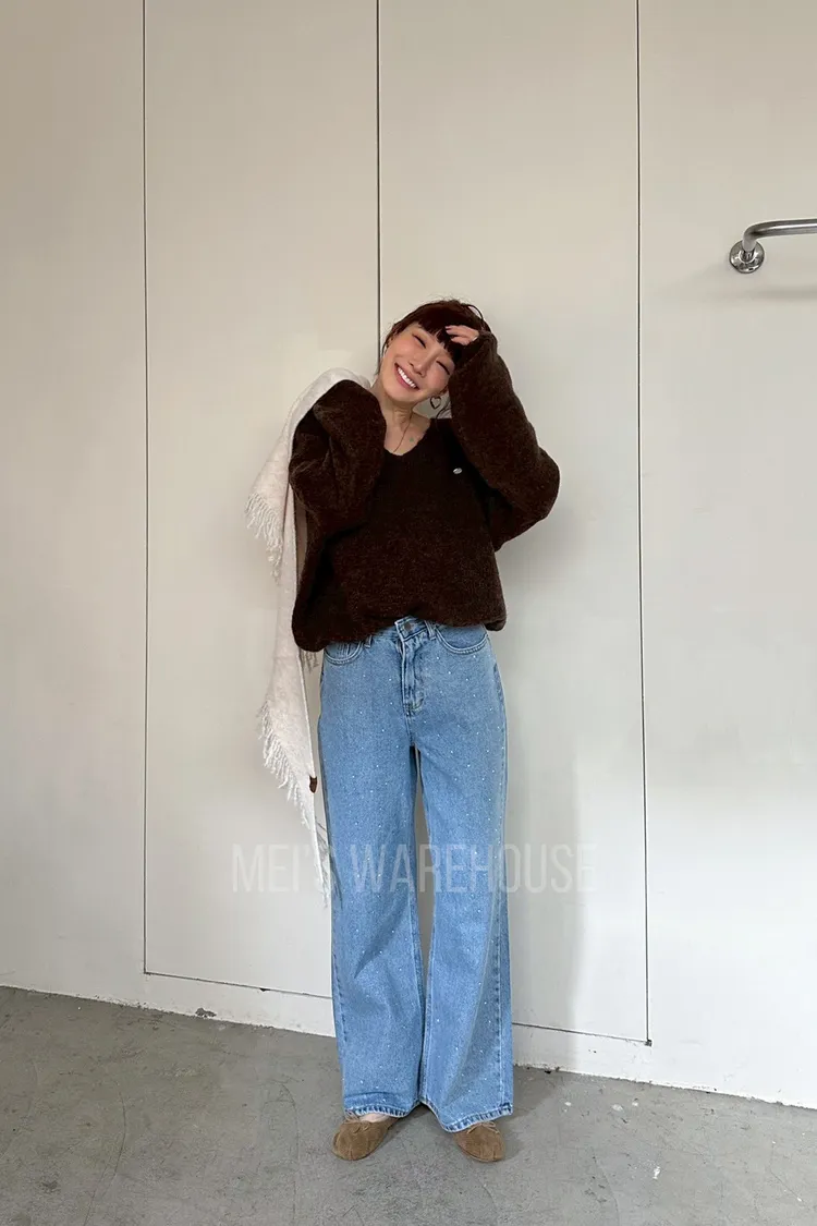 水鑽直筒牛仔褲