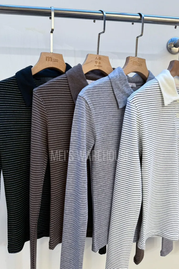 簡約條紋polo領上衣